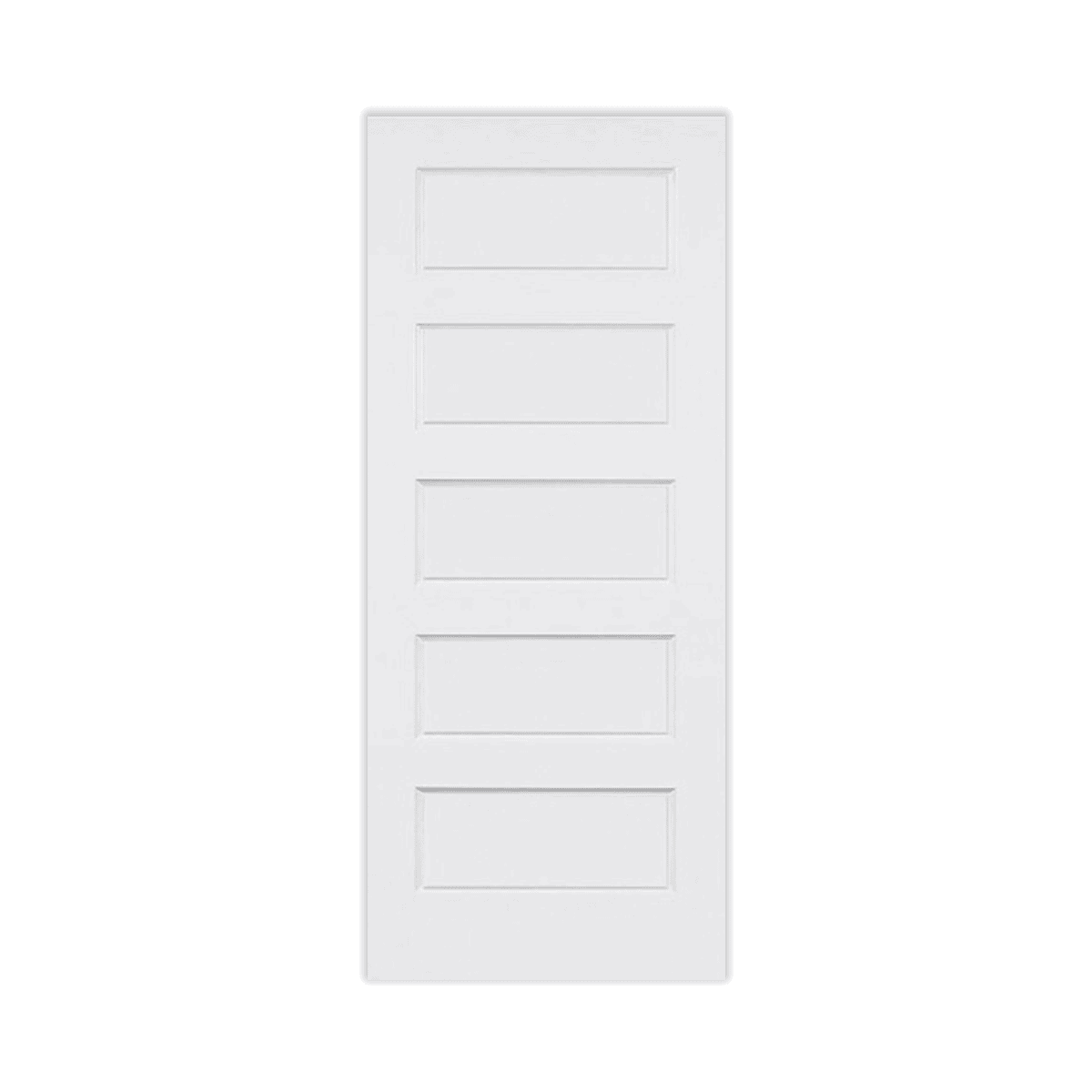 This 5-panel primed Shaker interior door delivers a more detailed interpretation of classic Shaker design, featuring evenly proportioned panels that add architectural depth and character. It is an excellent fit for craftsman, traditional, and transitional interiors where a stronger design statement is desired.